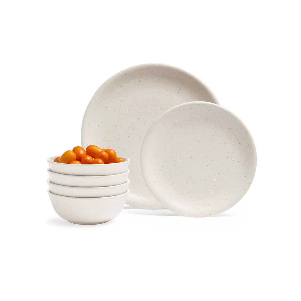 Refresh your table with this beautifully crafted white stoneware dinnerware set. Designed with a soft speckled finish and smooth, minimalist lines, each piece brings a warm, modern touch to everyday dining. The plates and bowls are durable, chip-resistant, and perfectly weighted for comfortable use. Ideal for both casual meals and elegant gatherings, this versatile set blends effortlessly with any kitchen style. Simple, timeless, and built to last — it’s the perfect foundation for your table.