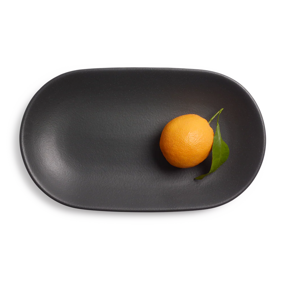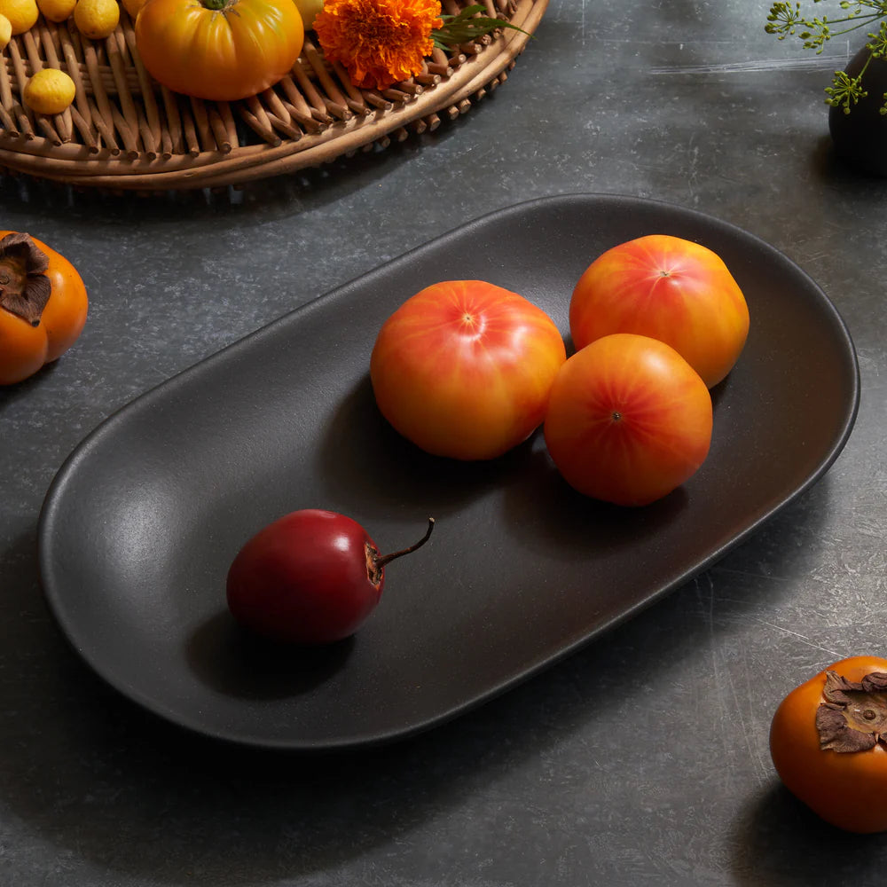 Elevate your table setting with this sleek matte-black oval serving plate. Crafted from high-quality ceramic, it features a smooth, modern finish that adds a bold and elegant touch to any meal. Its spacious, curved design makes it perfect for serving appetizers, fruits, pastries, or decorative displays. Durable, stylish, and effortlessly versatile, this plate enhances both everyday dining and special occasions. A perfect blend of form and function for the modern kitchen.